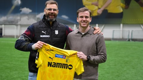 Hamarsingen Emil Sildnes (33) er klar på en to-års kontrakt, og fikk med seg dagens treningskamp mot Lyn fra tribunen i Raufoss Industripark Arena.